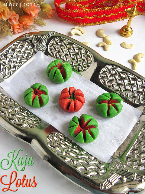 Colorful Kaju lotus/Kaju flower recipe – A welcome change from usual kaju katli !