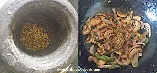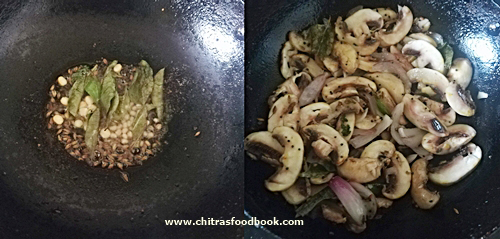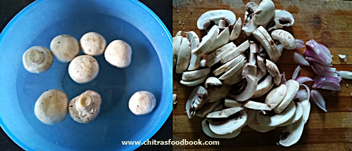 - Saute onion, garlic till transparent. Add mushroom slices, salt and mix well.