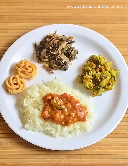 Recent days I have been trying varieties of mushroom recipes asking my friends, referring cookbooks. I am glad to learn this simple and yummy recipe. It came out well. Sendhil is not a fan of mushroom. But he liked this curry because of pepper flavor. Personally I liked it with sambar rice and rasam rice.