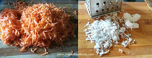 - Wash and peel skin of carrot. Grate it and set aside.