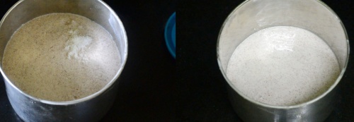- Ferment the batter and leave it over night or for 12 hours based on the weather in your place. The next morning, take the batter. It would have raised well. Add required salt and mix well.