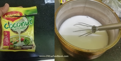 2. Take Maggi coconut milk powder packet. Follow the instructions and make thin coconut milk.
