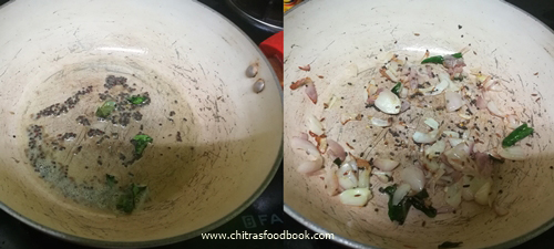 3. Heat oil in a kadai. Splutter mustard seeds, curry leaves.