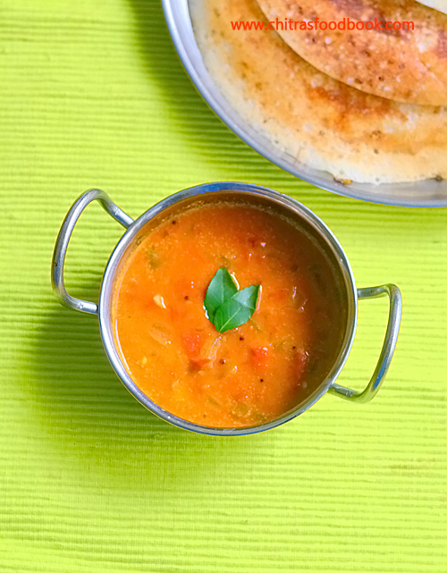 When I was looking for a Kerala style side dish for appam apart from vegetable stew, I got to know about this Kerala style tomato curry recipe / thakkali curry with coconut milk. It is an yummy side dish for appam, dosa and rice. This is the first time Iam making tomato curry with readymade coconut milk powder. I used Maggi coconut milk powder to make thin coconut milk and used in this recipe. Tomato curry came out very tasty and tasted more like kurma with mild masala flavor. Raksha and myself loved it with appam and dosa. I tried this recipe after watching few YouTube videos. In the video, this curry was prepared for rice. But I had it with appam and dosa. Hope it tastes good for idiyappam too. Friends, if you love tomato based side dish recipes, you must give this a try. You will love it for sure. Ok, lets check how to make Kerala style tomato curry for rice, appam with step by step pictures.