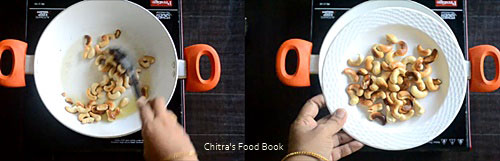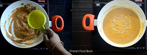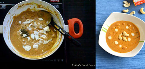 I have never heard about khoya kaju gravy until my reader friend Dheepika requested me to try this recipe after having in an Indian restaurant. When she told me about this recipe, I browsed and shared the recipe links from 2 different websites to her. She went through them and told me about the color & texture of the gravy along with a picture of one she had in the restaurant.When I browsed for the recipe, I found khoya kaju gravy tastes sweets with mild spices basically.But Dheepika told the restaurant people made it red in color by adding red chilli powder as they asked for a spicy version. Based on her inputs, I followed the recipe of white based khoya kaju curry from spice up the curry and I used red chilli powder in place of green chillies.I tried it yesterday for our dinner.After tasting this, Sendhil told Khoya kaju curry would be white in color in most of the hotels. Some people may add food color to present it red in color, he added. Whatever it is, gravy came out delicious and very flavorful.We loved it with roti. Thanks to you Dheepika for making me try this restaurant style gravy. Soon I will try to share the recipe of khoya kaju white gravy. Though this gravy is very high in calories with full of ghee, cashews and khoya, everyone must give a try at home as it tastes so good & delicious