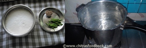 • Rice – Raw rice or steamed/ parboiled rice ( Puzhungal arisi/ saapatu arisi) – 2 cups