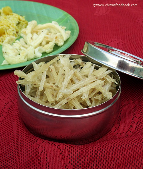 • You can also add little quantity of sago/javvarisi. It gives crispy and light vathal. But it absorbs little more oil while frying.
