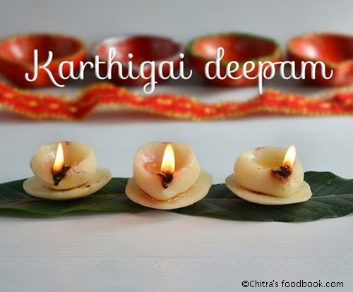 While lighting the lamps in the evening, put ghee for this rice flour lamp and light it, Once its turned off,u can have it with grated or chopped coconut pieces. As it is without salt, you should have this rice flour lamp with either grated coconut or grated jaggery. |