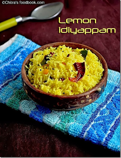 We usually make varieties of idiyappam like sweet idiyappam(with jaggery) , milagu jeeraga idiyappam , lemon , paruppu and puli idiyappam . Sweet idiyappam is a must and should recipe for guest. In addition to this we make any one of the above said varieties.Among all these varieties , i love lemon and puli idiyappam the most ..We make puli idiyappam whenever we have excess pulikachal in hand. Otherwise we usually make lemon and paruppu idiyappam for our dinner..It is very easy to make , colorful and a tasty breakfast/dinner recipe.