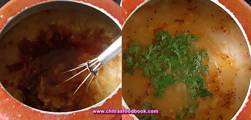 - Mix well and boil for few minutes till thick. Garnish with coriander leaves.