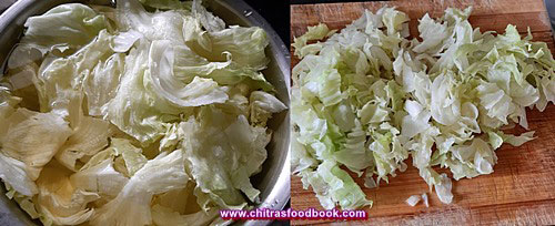 Last week I bought a big bunch of iceberg lettuce leaves for my burger. After making burger, I had some lettuce leaves leftover in hand. When I was thinking about what can I make with lots of lettuce, I browsed for some Indian vegetarian lettuce recipes. I came across this lettuce dal recipe and lettuce stir fry /thoran in Kerala style. Though I was a bit hesitant about its raw smell, I din’t want to waste the leaves. So I made up my mind and tried this lettuce dal recipe for the first time. To my surprise, it came out very well. It was tasting more like cabbage dal, Infact better than that. I couldn’t find any raw smell at all. I was so happy with the result. Even Raksha and Sendhil liked it a lot. Friends, don’t worry if you have more lettuce leaves in hand. You can make this yummy and delicious, healthy Indian style Iceberg lettuce dal recipe. I am sure you will love it.