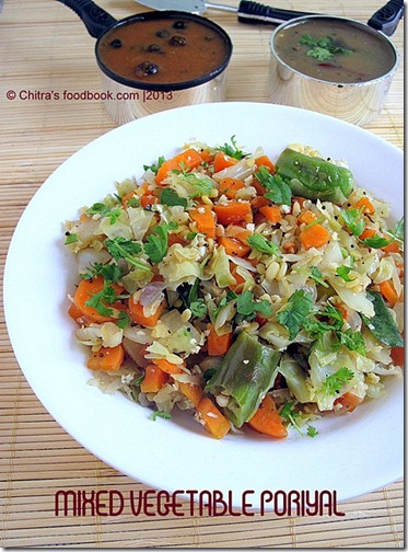 This is a very simple poriyal recipe made with a combination of vegetables..It tastes great with sambar sadam