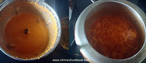 • If the gravy is too thin, boil for few minutes till it becomes thick. If the gravy is too thick, add some water, give a roll boil and remove it. Serve hot with rice.