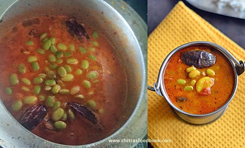 • Mochai and kathirikai adds a nice smell to this gravy.
