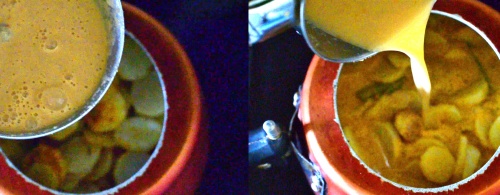 - Lastly add the salt. Pressure cook in low flame for one whistle. Open the cooker after the steam is released.