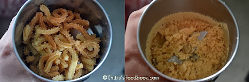 Murukku podi/powder is a very easy kids snack recipe which can be made in minutes using leftover murukku..
