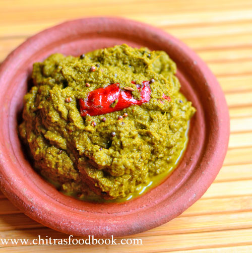 Murungai keerai thogayal / Drumstick leaves chutney for rice