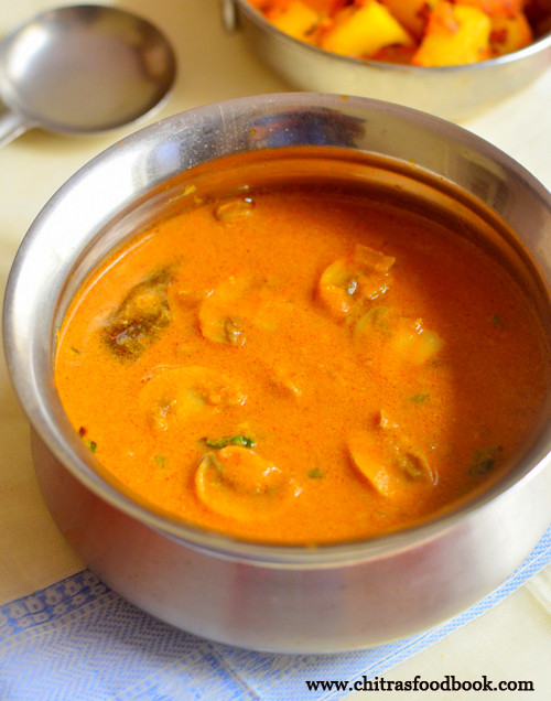 Mushroom kuzhambu / kalan kulambu recipe for idli, dosa, chapathi