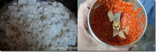- Wash and soak the basmati rice for 30 minutes. Pressure cook it adding 3/4 cup of water and a drop of oil.Remove and spread in a plate. Rice should cool completely and should be fluffy. Grind all the ingredients to make a smooth paste.