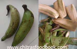 - Wash and peel the raw nendran banana.