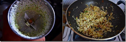 - Grind coconut , green chillies and jeera to a coarse paste without adding water. Set aside. Chop the cabbage and onions. Mix together the finely chopped cabbage, onions, and salt.