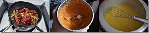 - In a pan , heat oil and roast all the ingredients given under “ to roast n grind”. Saute well without burning and switch off the flame. Make them to a paste and set aside.