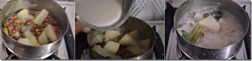 - Cook together ash gourd, green chilli, salt and 1.5 cups of water, till ash gourd becomes tender. Ash gourd also should not be overcooked and it should retain its shape.