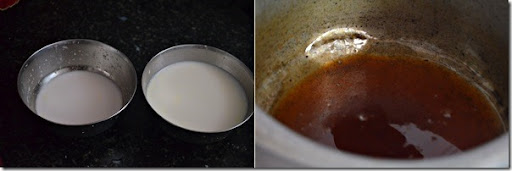 - In a mixie add 1/3 cup of water and take the first coconut milk.Set aside.Again add 3/4 cup of water and take the second milk.Keep aside.