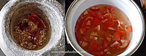 - Wash and chop tomato. Powder all the ingredients given under “To powder”.