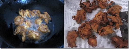 After I surfed, I came to know this is a Chettinad famous dish and it tastes good for rice, idli & dosa too. This gravy can be made with or without coconut as per our taste. I added little coconut paste for thickness. Also the pakoda recipe I’ve given here is an instant version. I have not used chana dal for making pakoda like Chettinad recipe. Instead I used besan flour and made it like our onion pakoda.