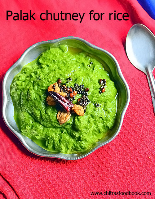 Try this easy, healthy Palak chutney for rice, dosa. Enjoy !