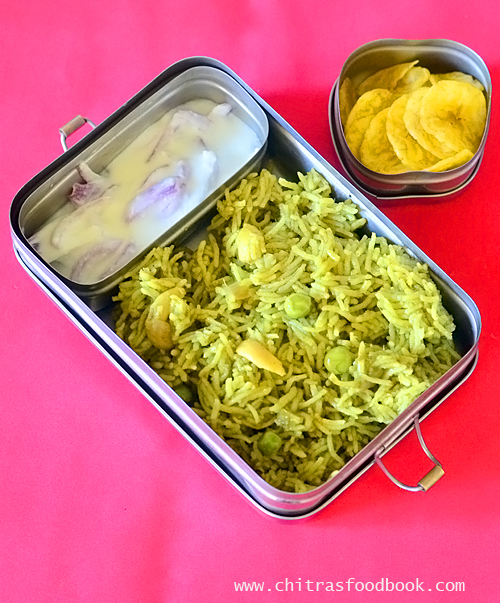Palak pulao recipe / Spinach rice using a pressure cooker for lunch box