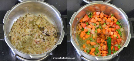 - Add carrot, green peas and saute for a minute.