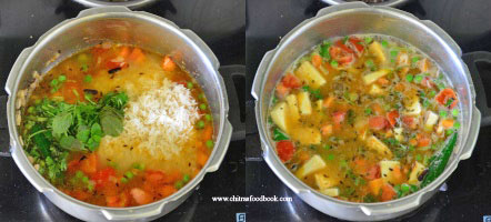 - Close the cooker and pressure cook in low flame for one whistle.