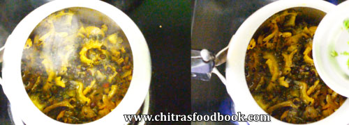 Actually this poriyal can be prepared by just sauting in a kadai with generous oil but I did everything in a pressure cooker with less oil and made it soft. It tastes good in either ways. Finally its our choice.