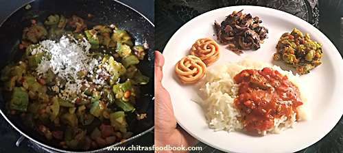 Enjoy this yummy ridge gourd poriyal with sambar rice or vatha kuzhambu rice.