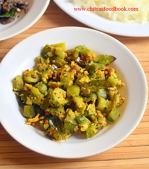 Ridge gourd stir fry ( peerkangai poriyal in Tamil) recipe is my recent try with this vegetable. Ridge gourd is called as beerakaya in Telugu, peerkangai in Tamil, torai in hindi, hirekayi in Kannada and peechinga in Malayalam. It is also known as Chinese okra and sponge gourd.