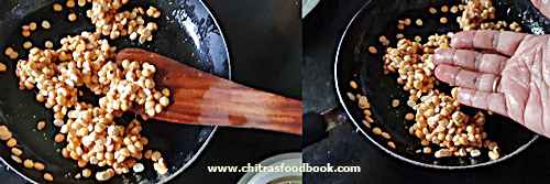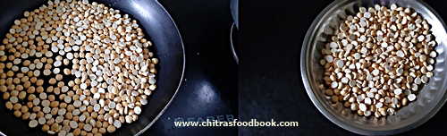 - Heat a kadai and roast the pottukadalai till its hot. Switch off and cool down.