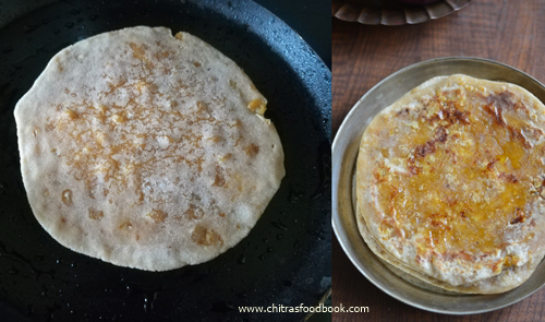 - Heat dosa pan with oil. Cook the puran poli both the sides.