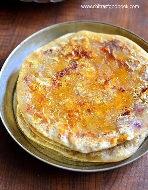Puran poli with wheat flour – Puran poli / Obbattu prepared with leftover chana dal puran