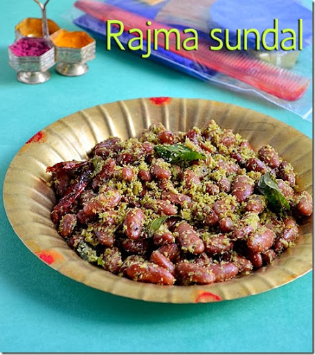 I tried rajma sundal for the first time. I have tried rajma masala for roti very long back. As rajma tastes very bland without any smell, usually i add more spices to add flavor to the dish ..So i tried this sundal adding freshly ground masala..Last year i posted masala sundal with green gram. I tried this sundal almost in the same way with slight variations. It smelt and tasted yum.We enjoyed a lot..Try this healthy sundal for this navratri and mail me ur feedback..