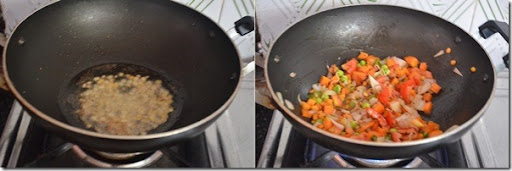 • Lastly add the tomato pieces & finely chopped vegetables. Saute everything till tomato mushes completely.
