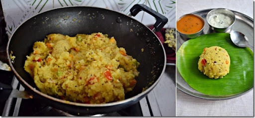 • You can also add vegetables like potato & beans. If you add beans , pressure cook the beans & then add to rava . Else it wont be cooked.