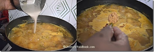 We add a little bit of raw rice to roast and grind ingredients and roast it along with the other ingredients and powder for the sambar powder. This gives a thicker consistency for the kozhambu. This is my mom's trademark sambar too (from tirunelveli) :-) Murungakka maanga sambar is the best! Perfect tirunelveli sambar color!