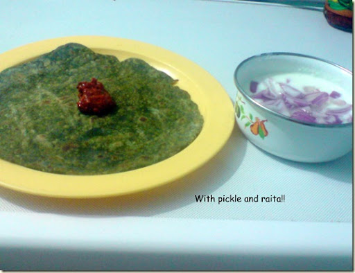 Yummy, healthy palak chappathi is ready. U can serve with onion raita and pickle!!