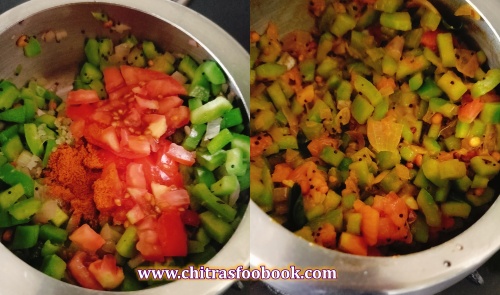 Just add in chopped snake gourd, tomato, onion, ginger, garlic, sambar powder, salt and pressure cook it for one whistle. Mash it well and temper in ghee. Voila, Snake gourd kootu is done. You can mix this kootu with plain rice adding ghee or serve as a side dish for vatha kuzhambu and curd rice.