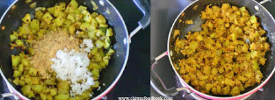- Mix well and add 1/4 cup of water. Cover cook till it becomes soft but looks firm in shape.
