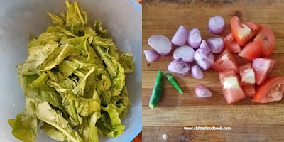 - Wash the keerai several times. Chop roughly and set aside.
