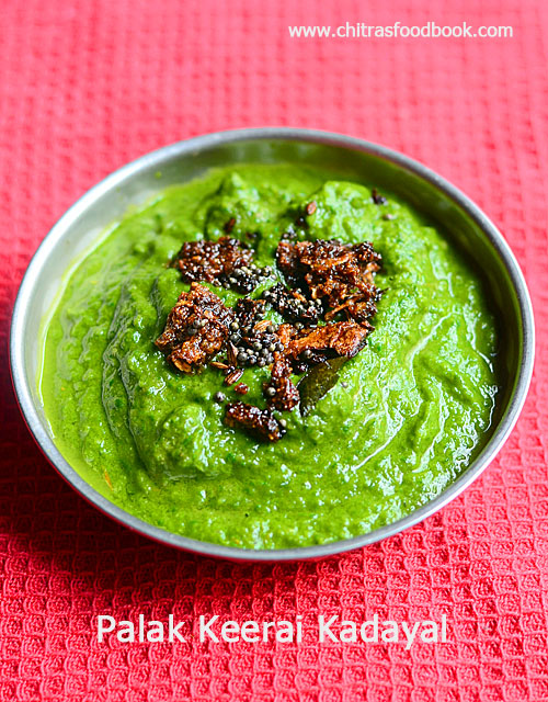 Palak keerai kadayal or masiyal is a simple, healthy and yummy side dish for rice, idli and dosa. I am happy to add this to my Palak keerai recipes list in my regular cooking. Its procedure is simple but it tastes so good. Usually palak keerai kadayal is prepared with toor dal or moong dal. But this pasalai keerai kadaiyal is without dal. It tastes more like chutney or thogayal.