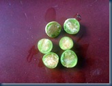- Wash the sundakkai and remove the stem.Cut into two halves and soak in water so that the color doesn’t change.